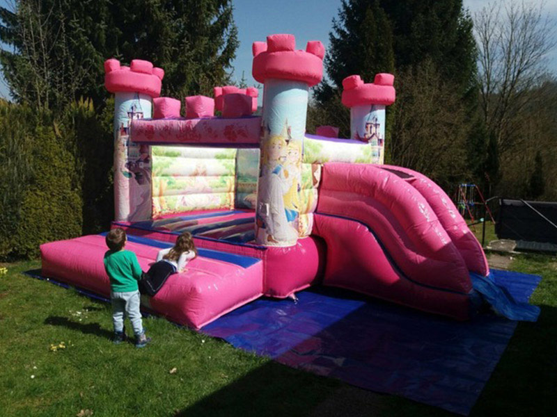 Ein echter Mädchentraum wird wahr mit der Prinzessinnen-Hüpfburg. Die pinke und rosa Gestaltung und die hübschen Türmchen sind einfach perfekt für kleine Prinzessinnen.